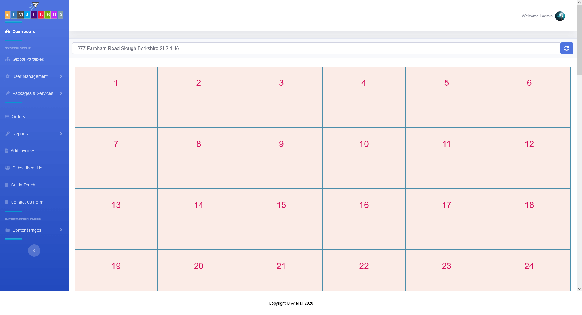 A1 Mailbox’s dashboard provides complete control to its users. Users can manage its setup according to its business logic. A menu is provided that has shortcuts of all orders, financial statements, all users/ subscribers that have entitlements in the system.The calendar is provided on the dashboard that gives all the insights of the processes going on.